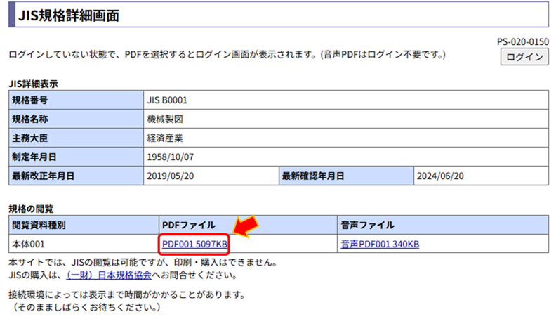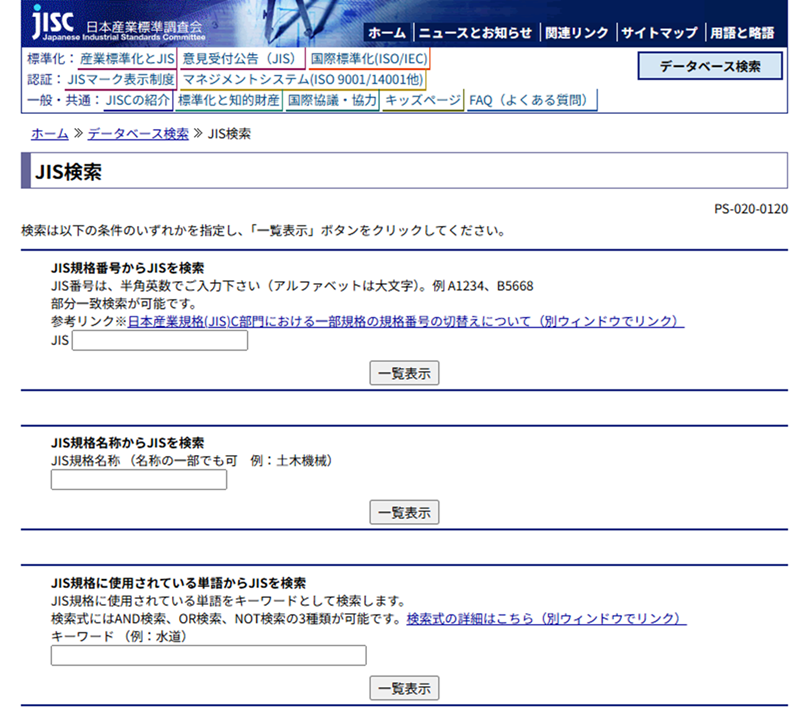 昔はこれでJISページが開かれたのですが、今では登録が必要になったようです。なのでこのままJIS登録も行います。
