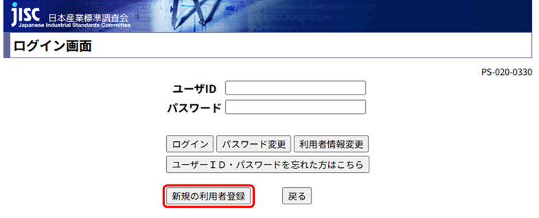 ログイン画面が出てくるので、[新規の利用者登録]をクリックします