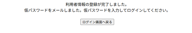 登録が完了すると入力したメールアドレスに、ユーザーIDと仮のパスワードが送られてきます