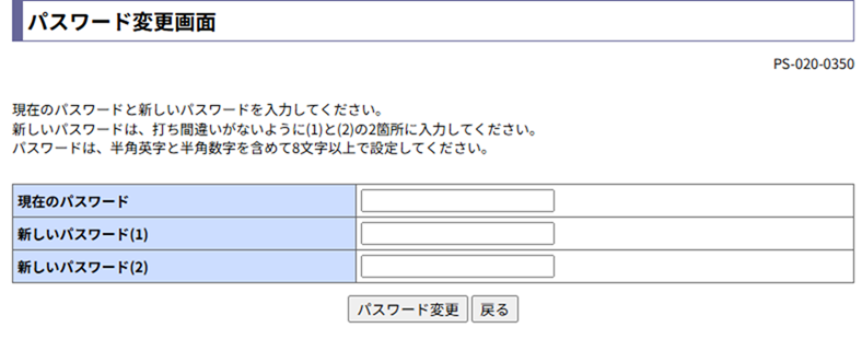 パスワード変更画面が出てくるので、新しいパスワードを設定します