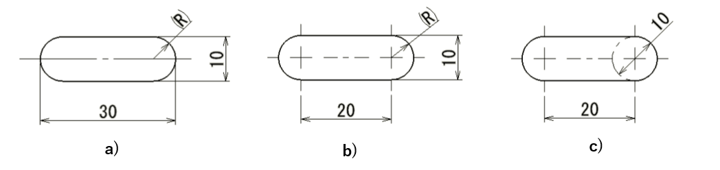 旧JISで指定されていた長円の穴の図示例は上記の3つでした。