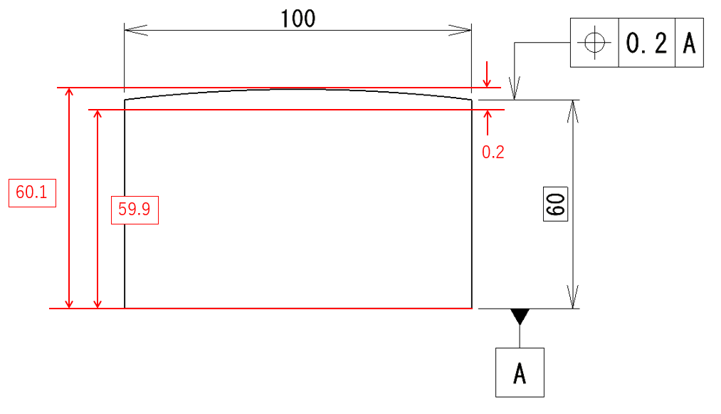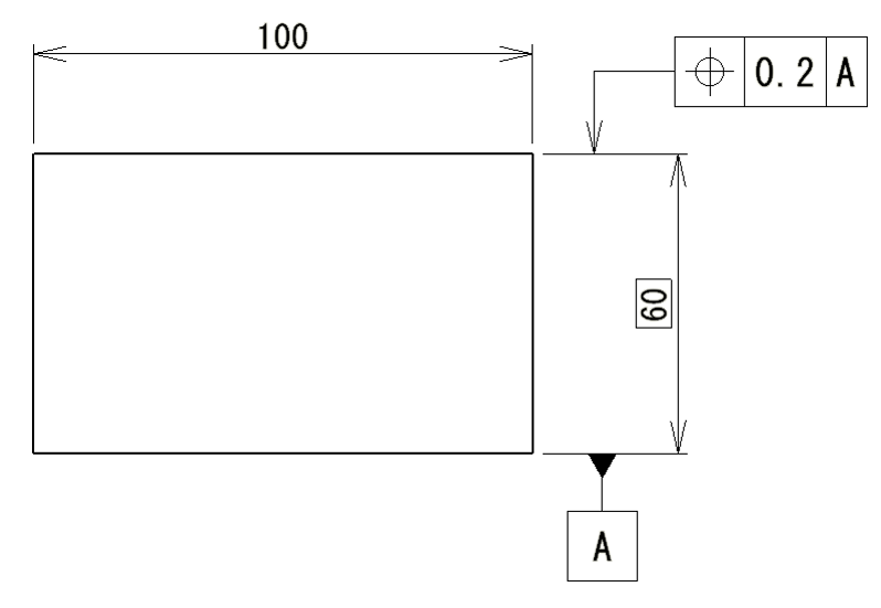 今回は位置度0.2となっているため、理論的に正確な寸法60に対して0.2の範囲に、形状位置が定義されている状態です。