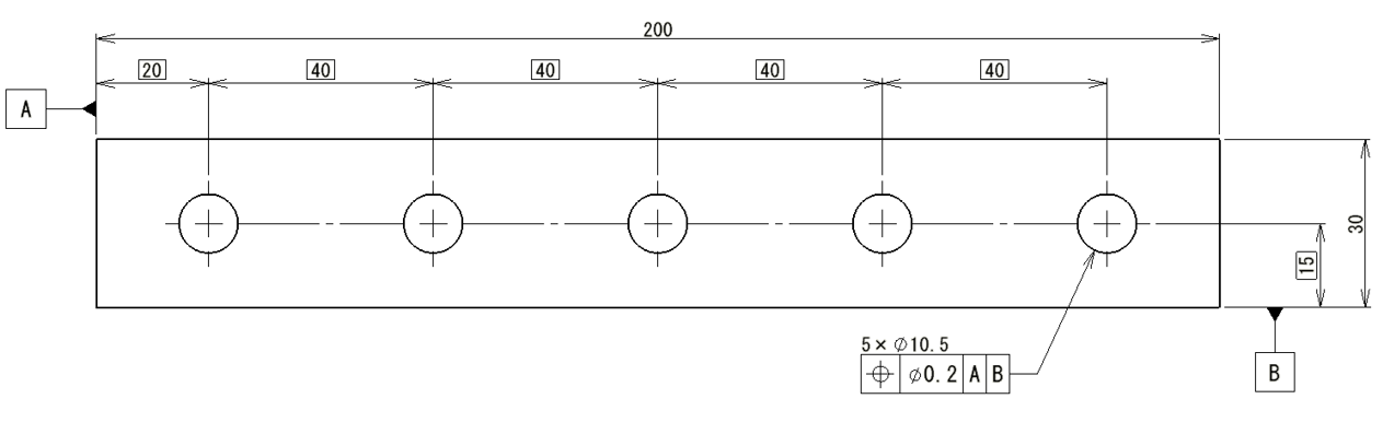 次に面ではなく穴ピッチに対して、位置度を使用するパターンについても説明していきます
