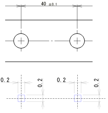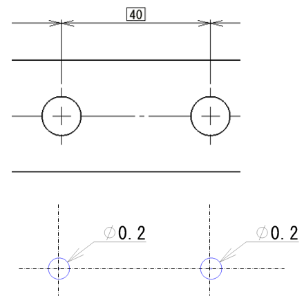 位置度を使用することで、穴ピッチの40は理論的に正確な寸法の位置になるため、寸法公差と比較してバラツキを少なくできます。